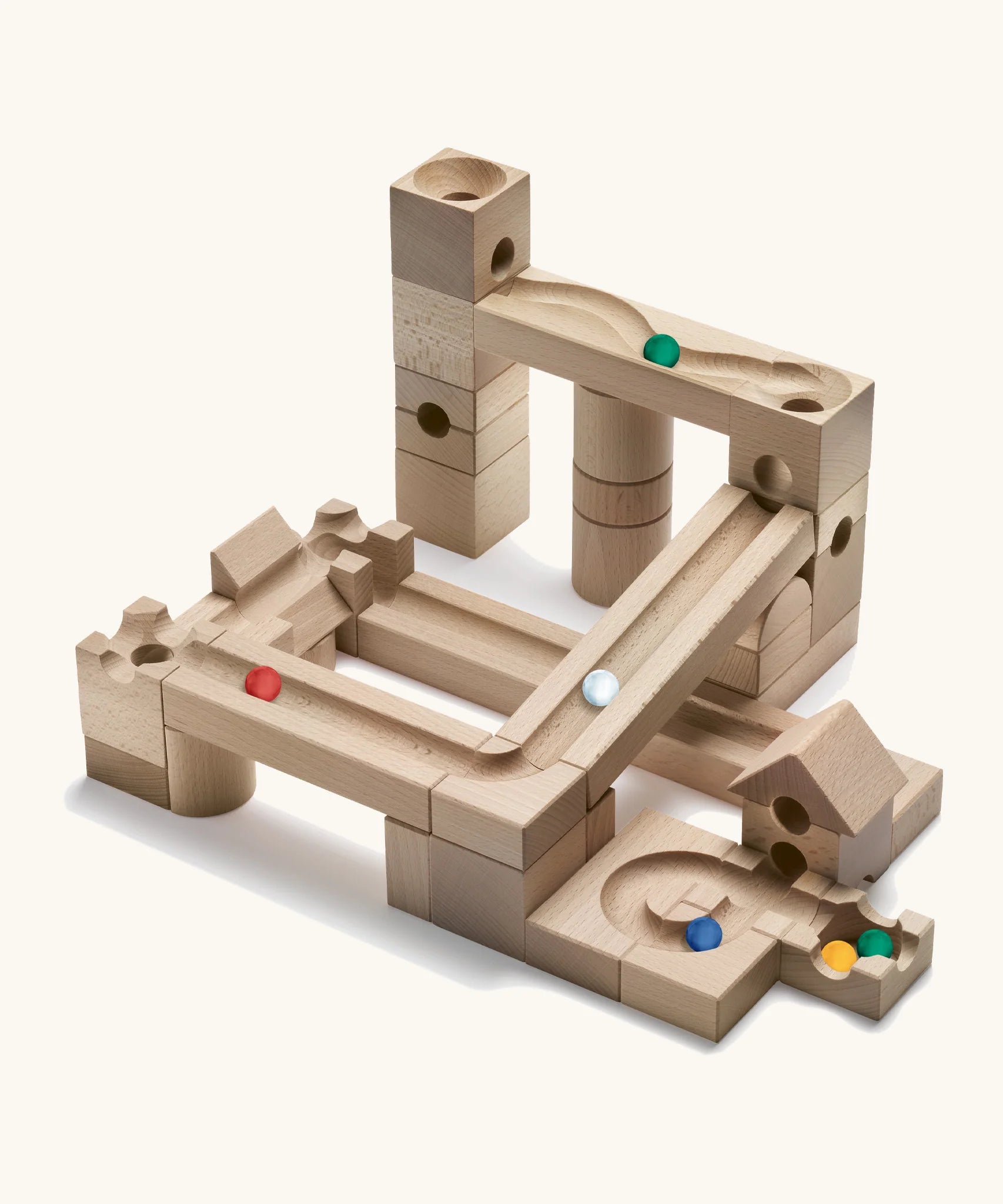 An amazing starter set for this fabulous wooden marble run system from Cuboro. With 40 marble run pieces and six marbles, there are so many different marble run possibilities and designs, each one with new learning to be gained.