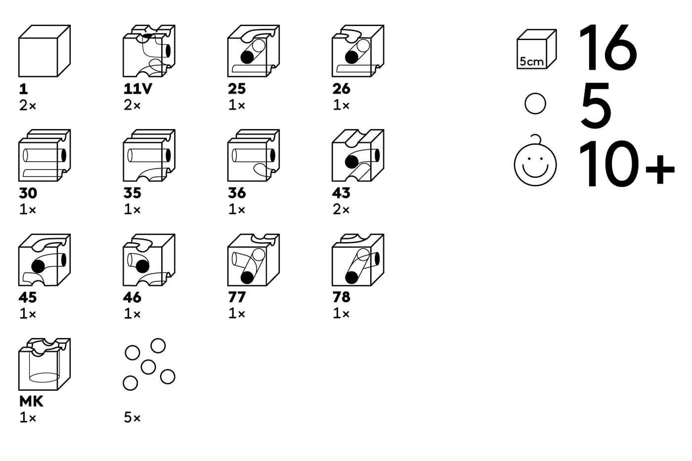 • Compatible with other Cuboro sets to create larger and more complex marble runs