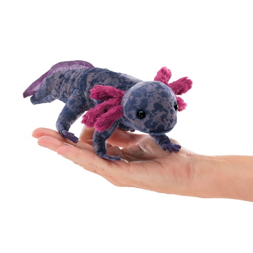 Native to Mexico and known as little "water monsters," axolotls are curious creatures. Dark hues of purple with fuchsia accents and a movable head distinguish the Folkmanis Black Axolotl puppet. Learn about this amazing amphibian up close and personal with this extraordinary plush plaything. Recommended for ages 3+. 8.5" Long.