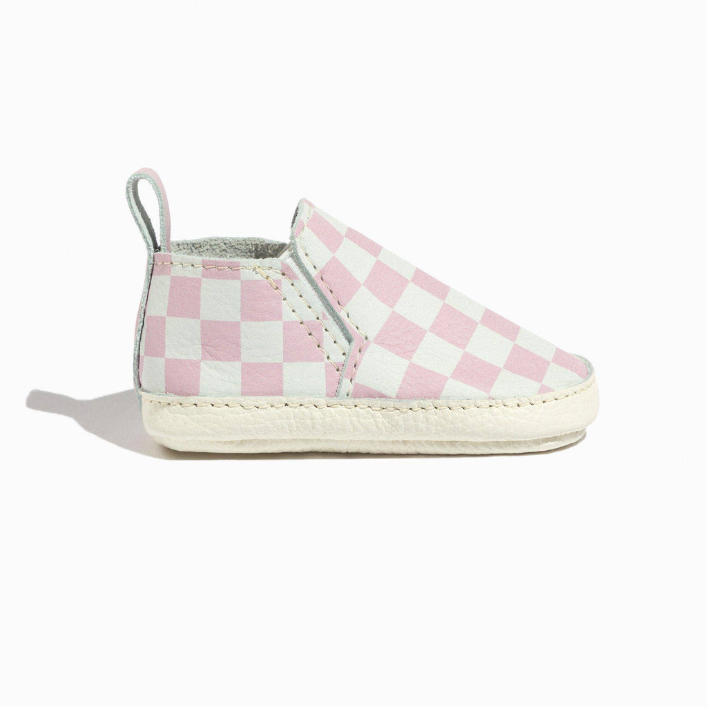Freshly Picked Petal Pink Check Slip On Baby Shoe
