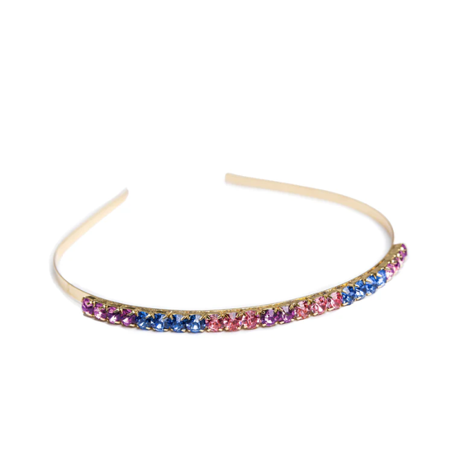 Our Boutique Chunky Gem Multicolor headband features a metallic band studded with bold & beautiful pink, purple and blue gems.