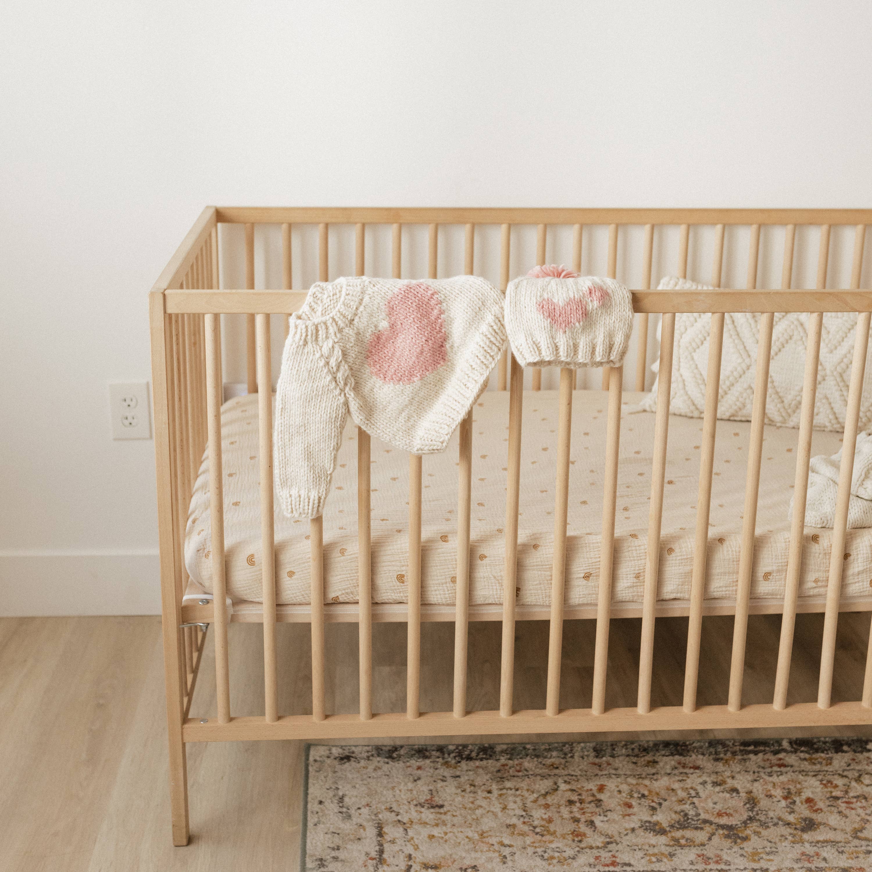 Celebrate love with our Sweetheart Sweater. Hand-knit in chunky yarn, this crew neck sweater in Natural has a Heart knit in Rosy Pink yarn. Hand knit, it is soft and warm. This is such a great girls sweater and makes an adorable Valentine's Day gift. Make sure you buy the matching Sweetheart Beanie Hat to go with this. Our sweaters are partially knit from recycled, sustainable Polyester yarn made from plastic bottles. We are on a mission to help reduce the world's plastic pollution problem ♻
