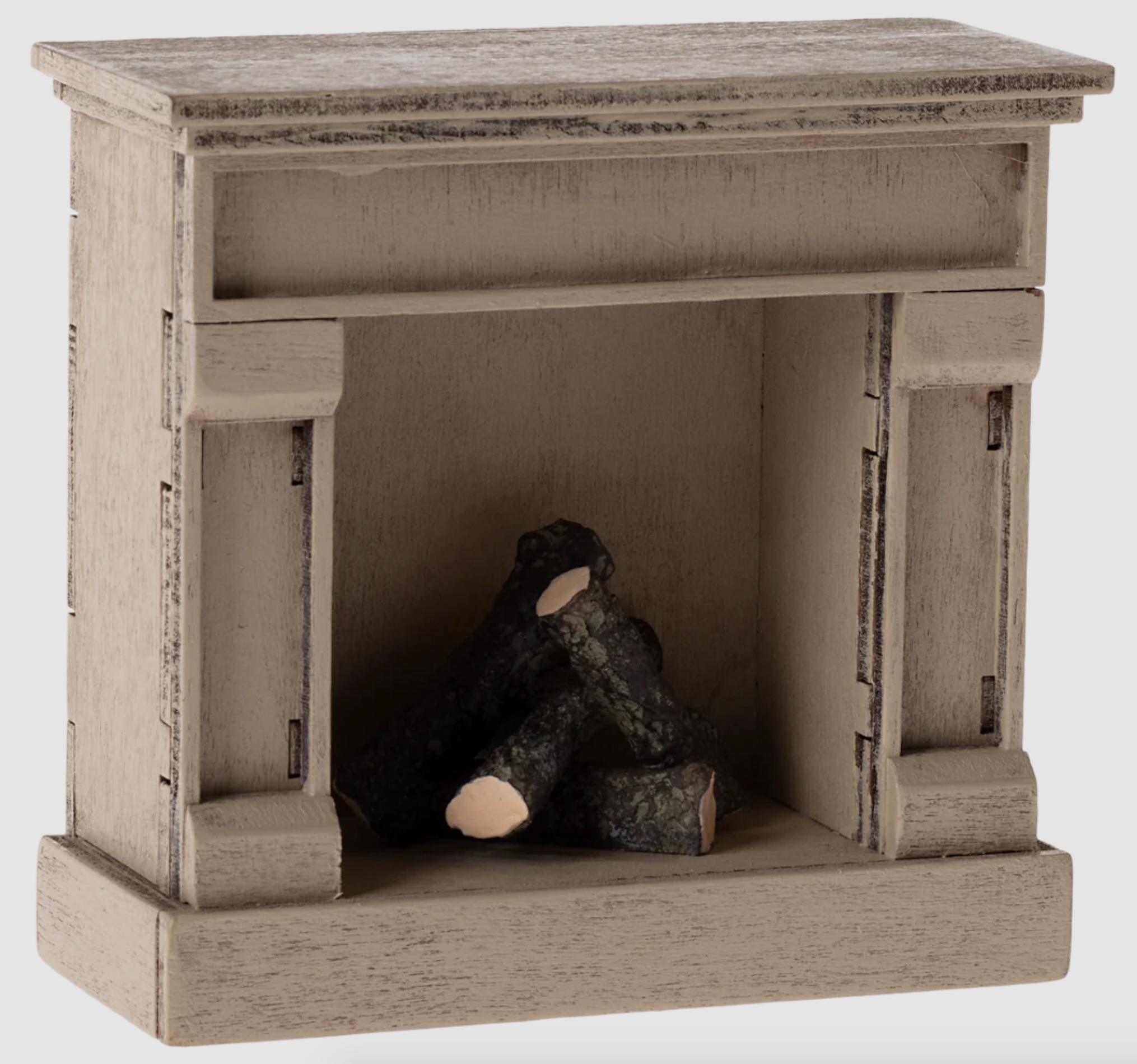 Use this wooden fireplace to warm your miniature home. It has an authentic look and a vintage finish. Remember to turn off when your friends go to bed. The product comes without a battery. You can add a coin cell battery (CR2032).