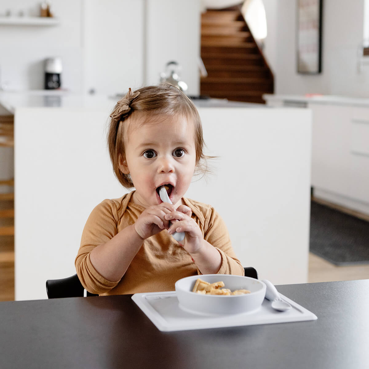 The Mini Bowl is designed for toddlers 12m+. The suction feature helps little ones to eat independently and means less mess for parents.