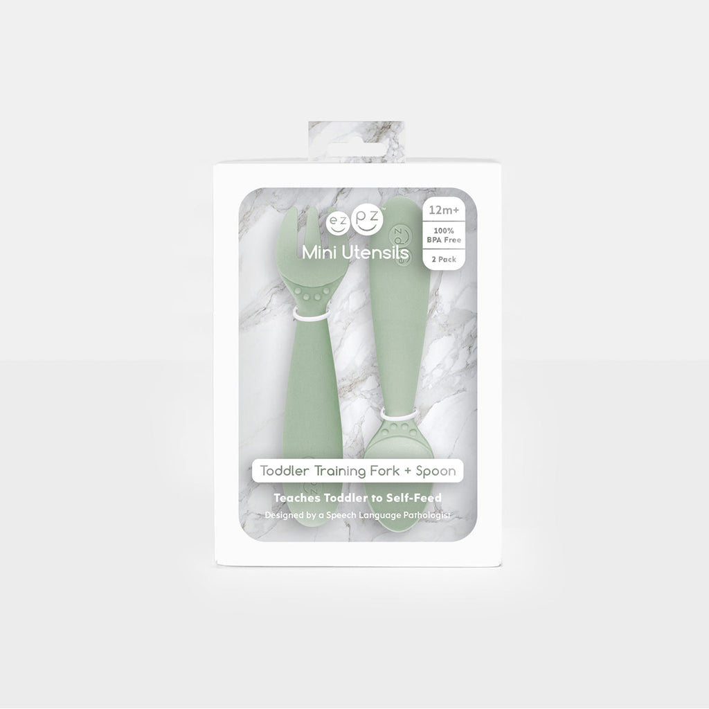 The Mini Utensils are designed to help toddlers learn how to eat with a spoon (scooping) and fork (piercing). The Mini Spoon and Fork are the most functional, developmentally appropriate toddler utensils on the market.