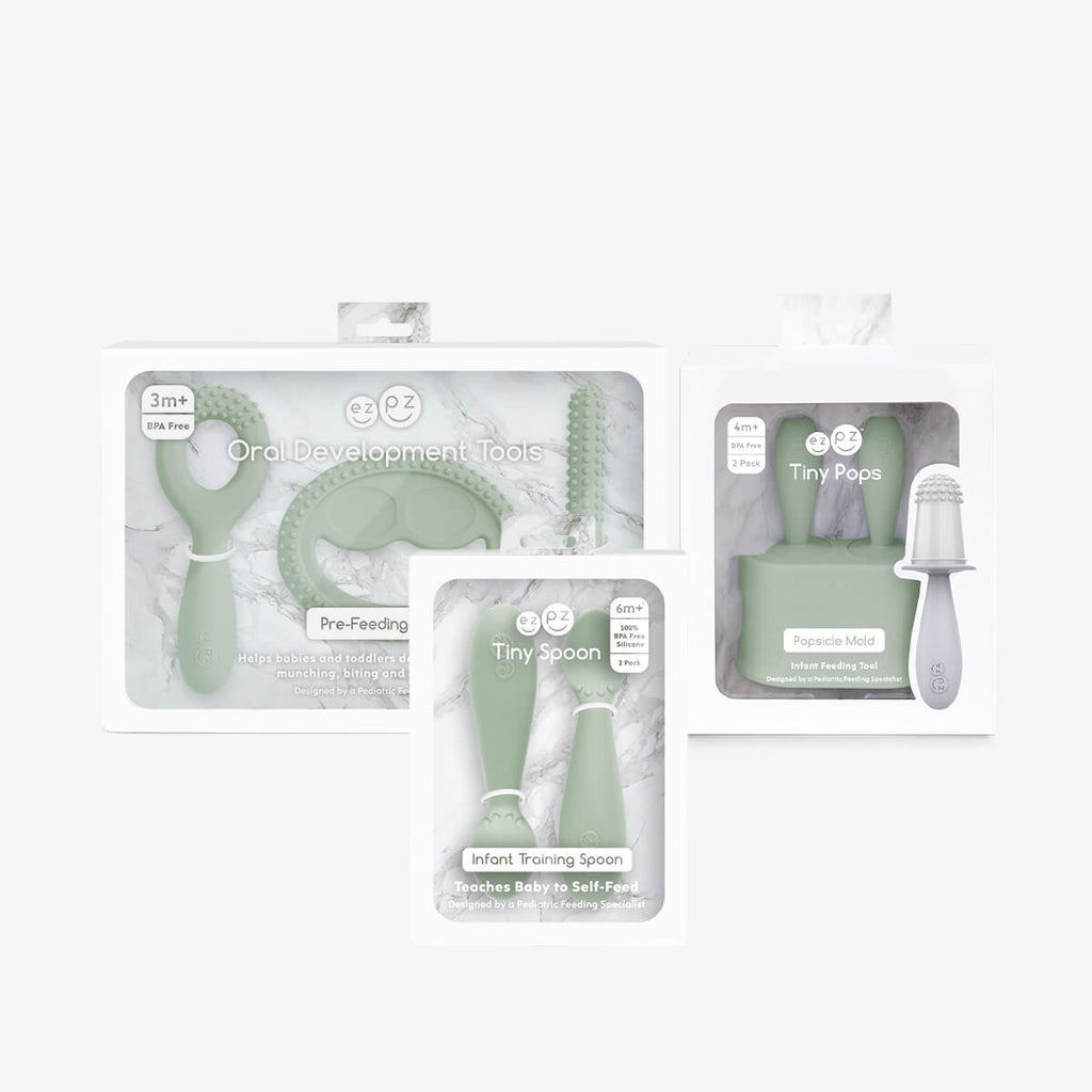 Motor planning is a skill that helps children remember the steps to perform an action. Our easy-to-hold handle provides babies + toddlers the motor planning needed for successful and consistent movements to the mouth. The Motor Planning System includes the