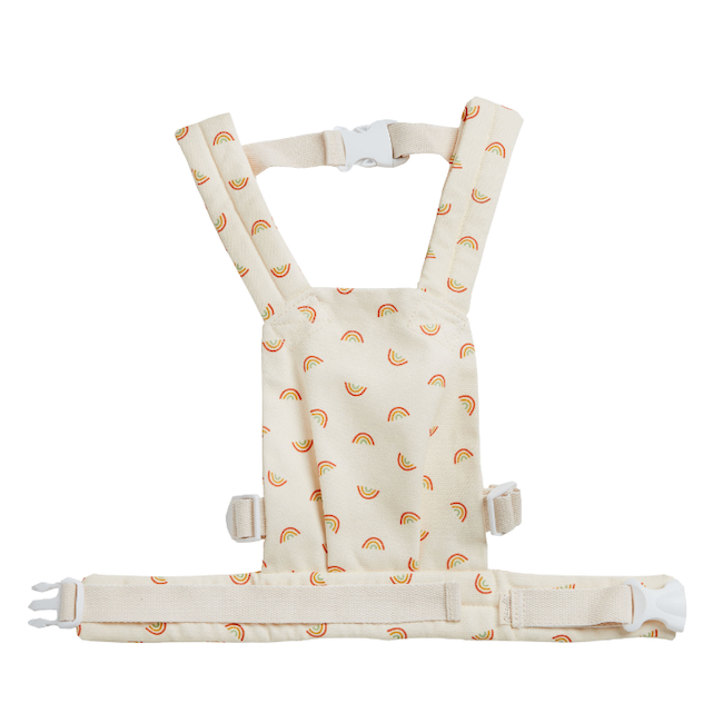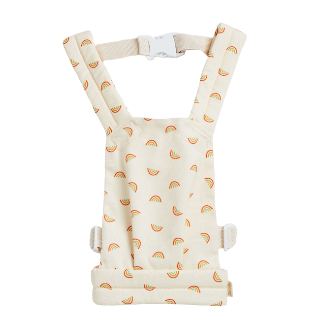 Your little ones can keep their beloved Dinkum Dolls close in our Rainbow Carrier just like mum and dad! This pint-sized carrier is perfect for play, to share memories of when your little one was a bub or to share in the baby wearing fun when welcoming a new sibling. This mini carrier features our signature Dinkum rainbow print, is easy to clean and has adaptable straps that can be worn on your child's front or back. Let the hands-free adventures begin!