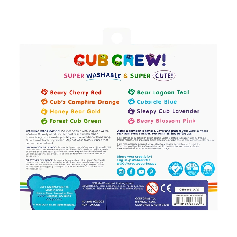 Brought to you by OOLY, these Cub Crew Markers are designed to inspire creativity and self-expression in young minds. This set of 8 markers is perfect for arts and crafts activities, inviting kids to 'Create Their Happy'. As a company, we passionately deliver high-quality products that spark imagination. With these markers, children can bring their artistic visions to life in a vibrant and colorful way. Enjoy the whimsical world of creativity with OOLY.