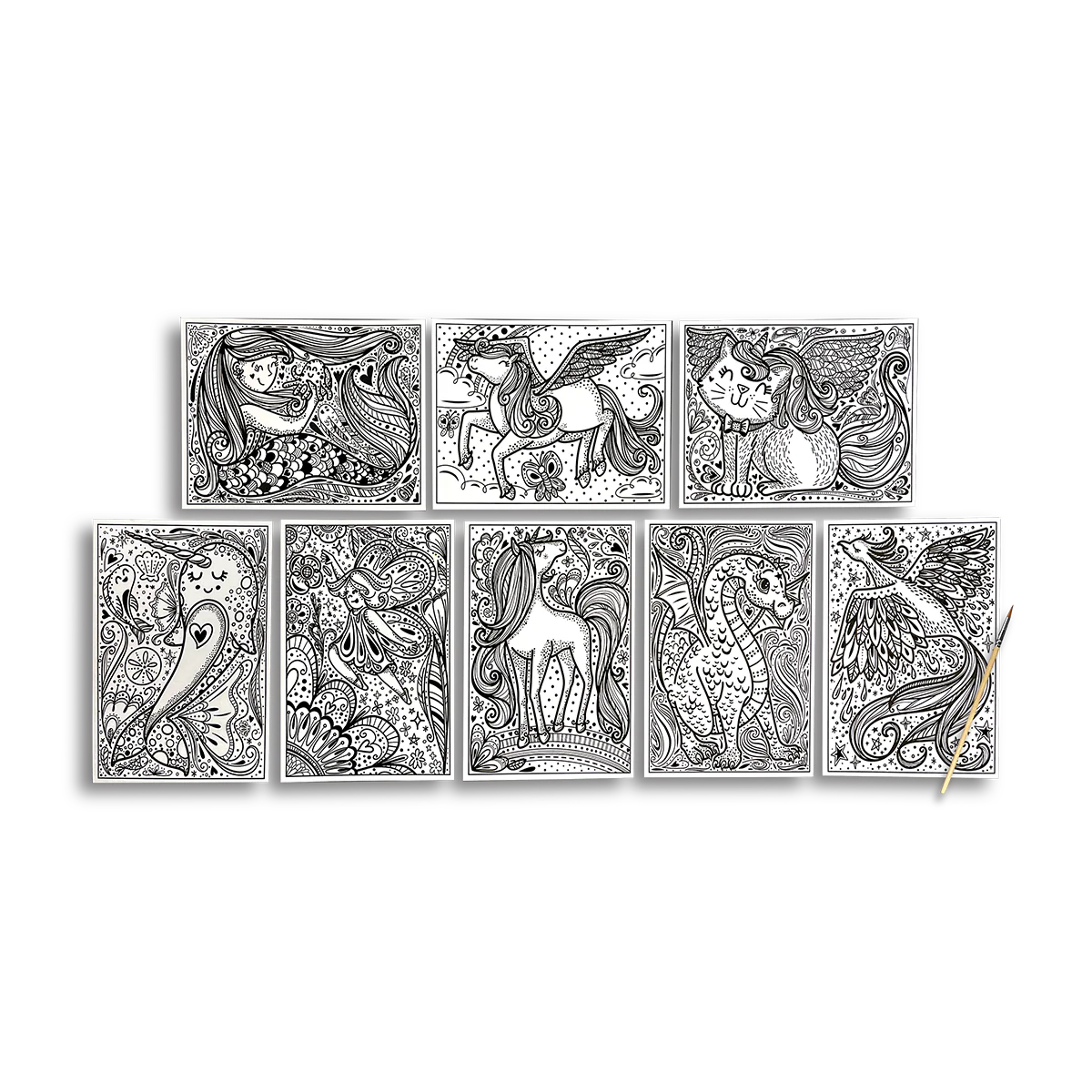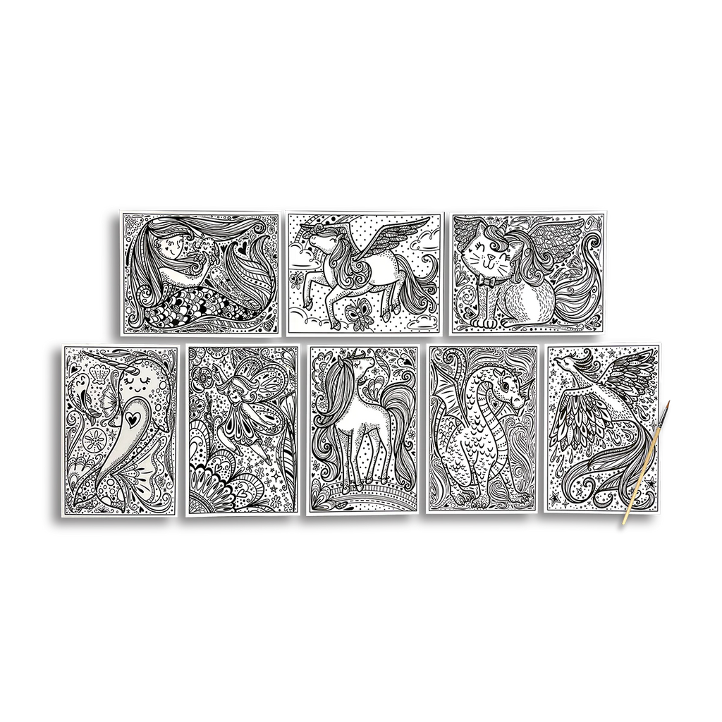 Are you ready to reveal an unforgettable circle of magical pals? These magic painting sheets only need water to go from a black and white illustration to a colorful, lively work of art! The kit includes a paint brush and eight reveal sheets featuring different fantastical pals - all you need to provide is the water!