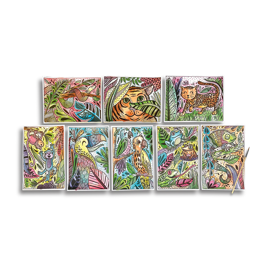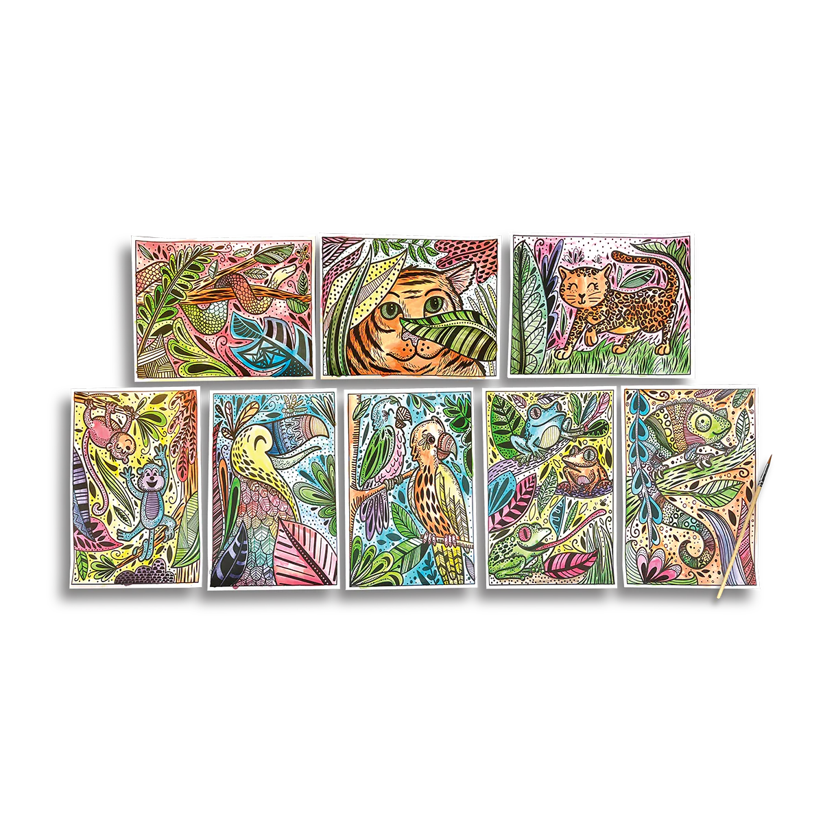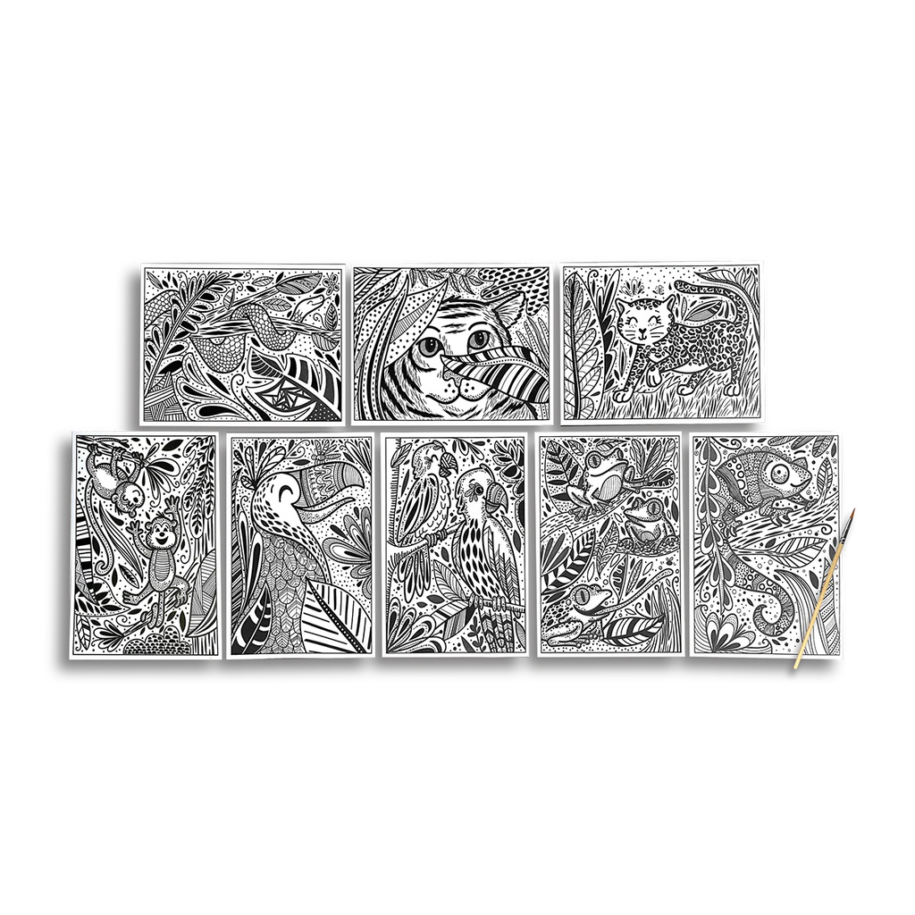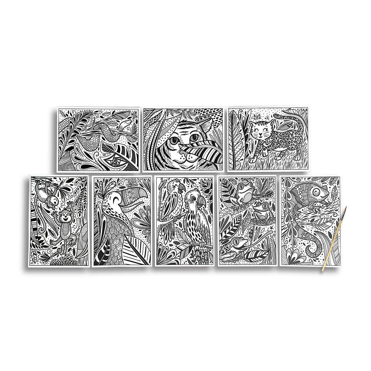 One thing the jungle is not, is black and white! Watch it come to life with just a brush of water when you use these hidden colors water reveal sheets. Eight different designs are included along with a brush. Just add water to begin your creative trek through this delightful jungle!