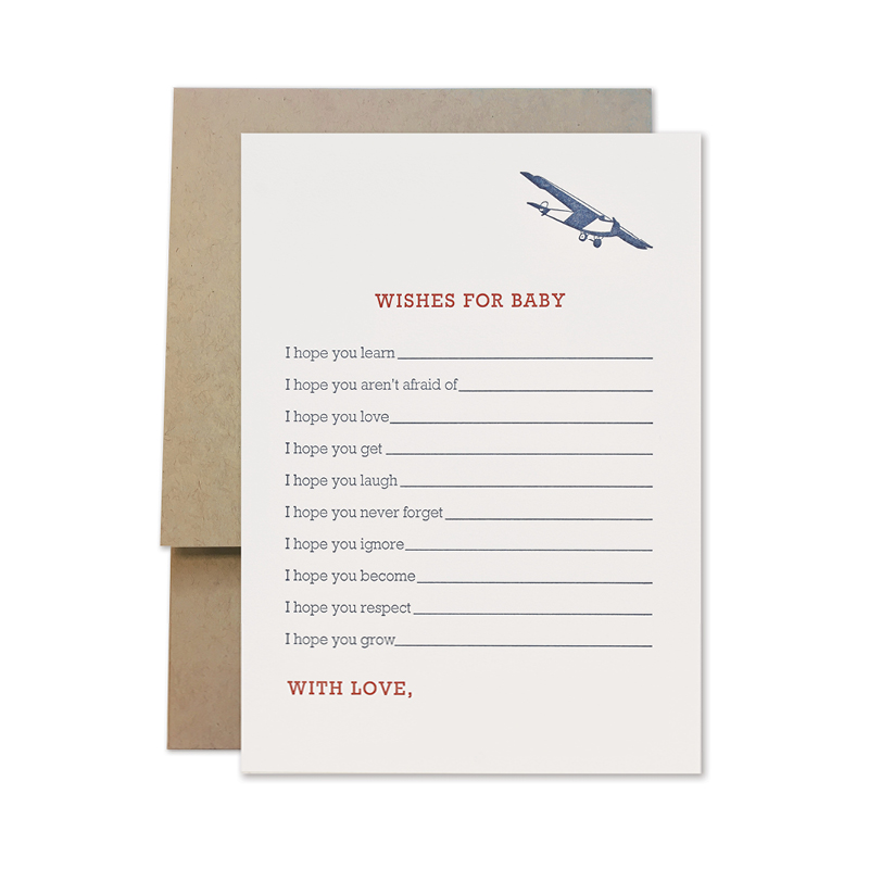 Perfect for a baby shower or first birthday! These keepsake letterpress printed fill-ins allow your guests to write all of their wishes for the little one.