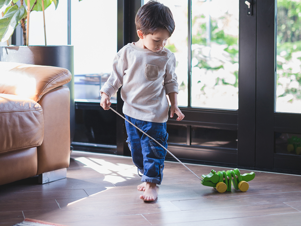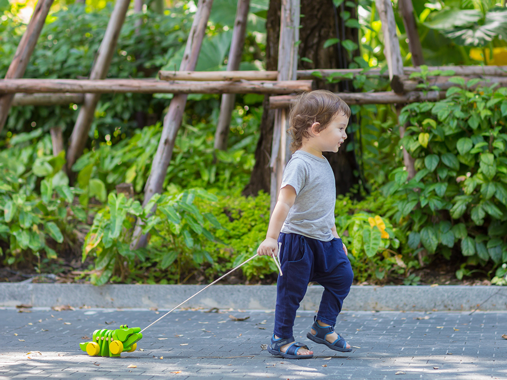 When pulled, the alligator will walk and make rhythmical click-clack sounds.