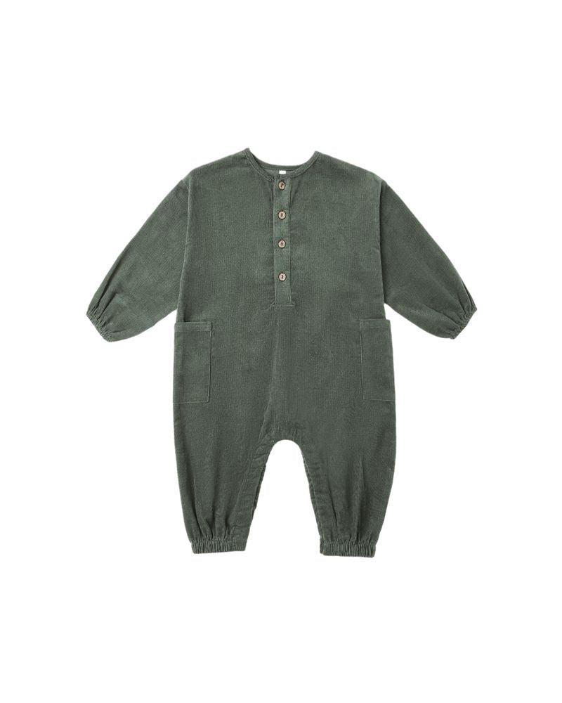 Our corduroy romper features coconut buttons at the center front and snaps along the inseam to create a bubble-like silhouette. It also has pockets at the side seams.