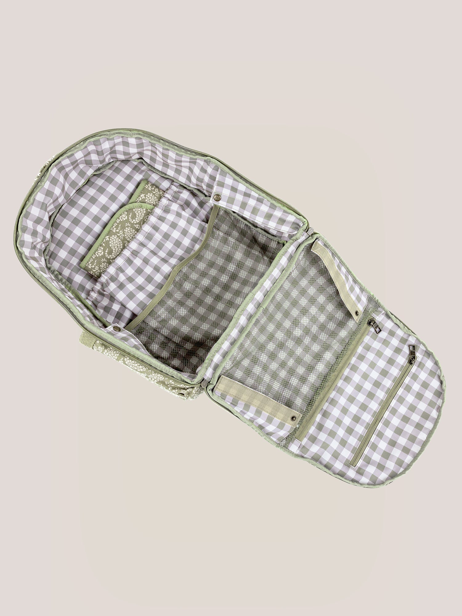 Pockets? Check. Tons of room? Check. So stylish it turns heads? Check. The Classic Backpack diaper bag from Sazan Hendrix + JuJuBe has it all! From an easy-access wipe pocket and insulated bottle pocket to a quick-reach cell phone pocket and a cushioned changing pad, the Classic Backpack is full of intuitively designed features that make parenthood easier. The contoured shoulder straps are comfy, and the trolley sleeve and stroller straps make travel easy. Made with durable and machine-washable 100% cotton canvas in a cute floral paisley print, plus a neutral gingham lining, this bag adds a handmade charm for the baby years and beyond. Wherever life takes you and your little one, you can stop stressing and start making memories!