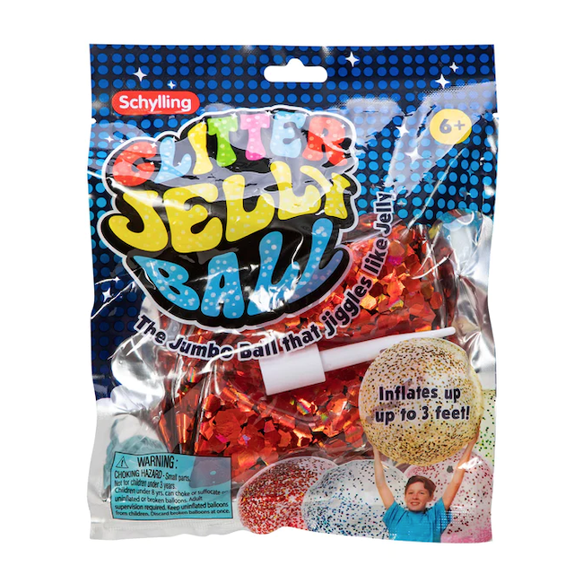 It’s super-stretchy that inflates to a jumbo size ball! Inside the ball is spectacularly large glitter to give a sparkle to the jiggle.