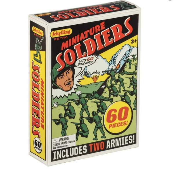 Retro toy soldiers just like you remember! Contains two armies of classic toy soldiers. 60 pieces in all.