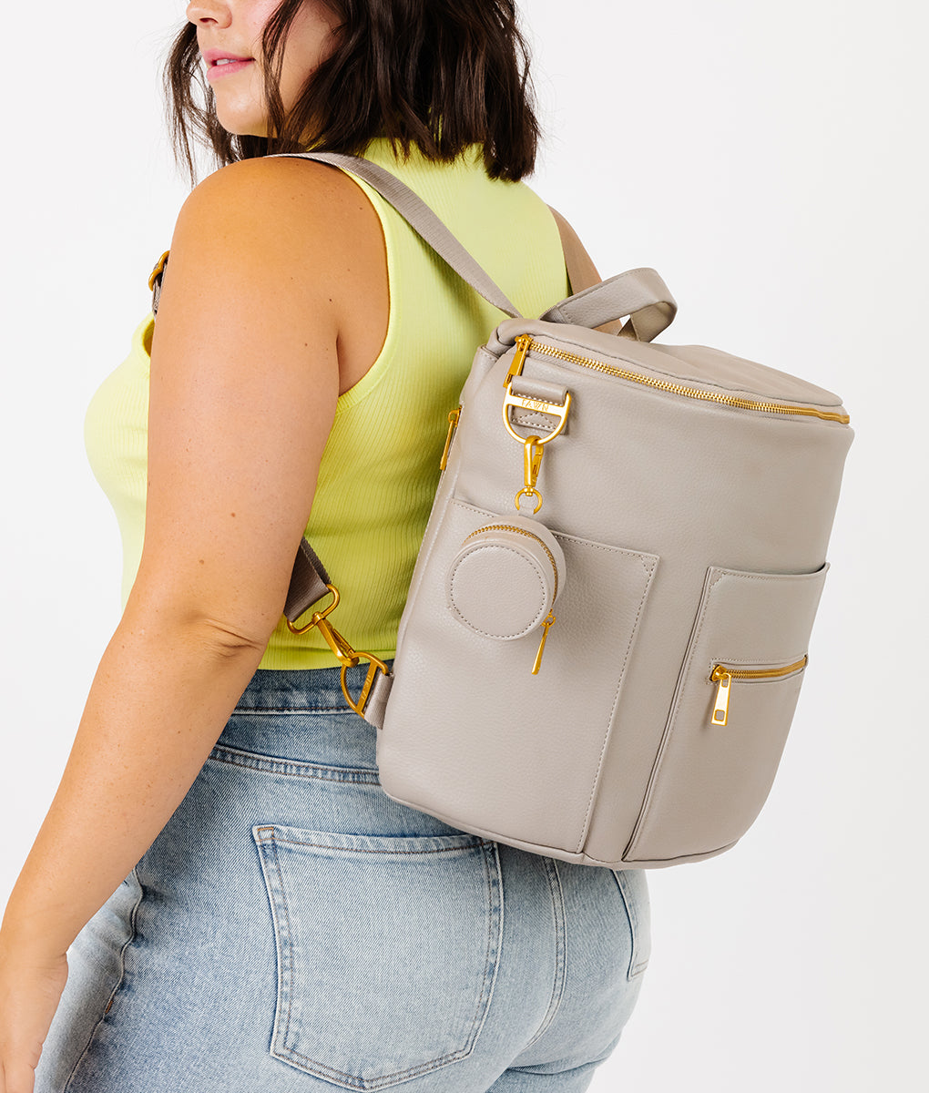 A stylish way to keep the germs at bay! The Fawn Design Paci Case is an insulated (food safe tested) zippered premium pebbled faux leather case. It fits mostly all standard size pacifiers. It can easily clip onto the outside or inside of your Original Diaper Bag. Keep your baby's pacifier nice and clean when you're on the go and never lose a pacifier again!