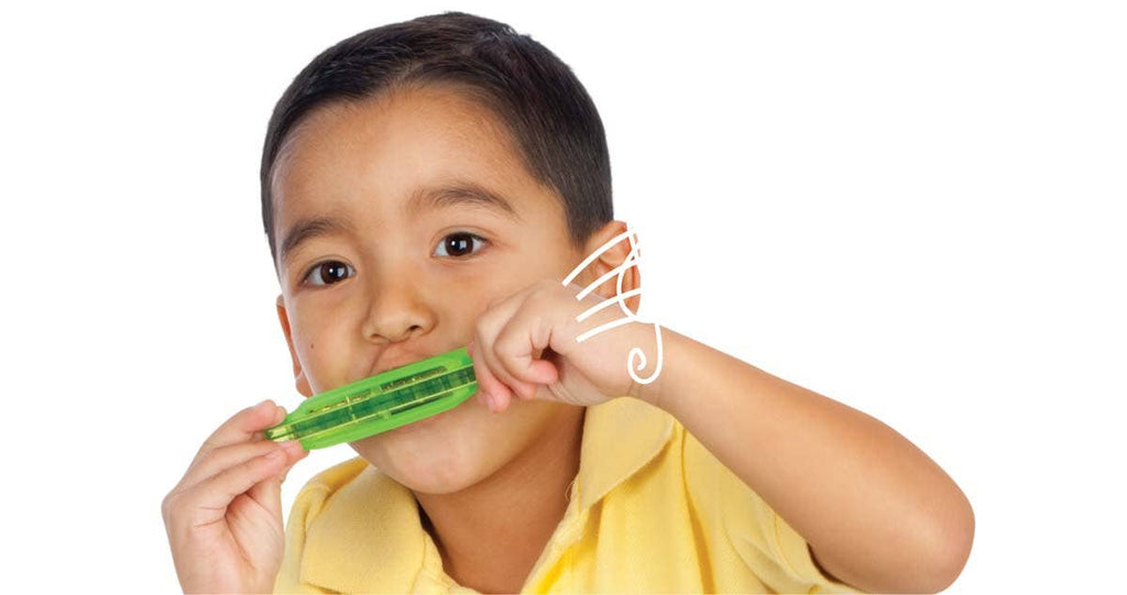 This beginner-friendly plastic harmonica is ideally sized for kids and comes in an assortment of colors. Each 4-inch translucent harmonica is contained with a clear plastic case for easy take-and-play musical fun. Harmonicas come in an assortment of colors, and 12 harmonicas can fit within a musical-themed 12 x 9.6 inch display case.