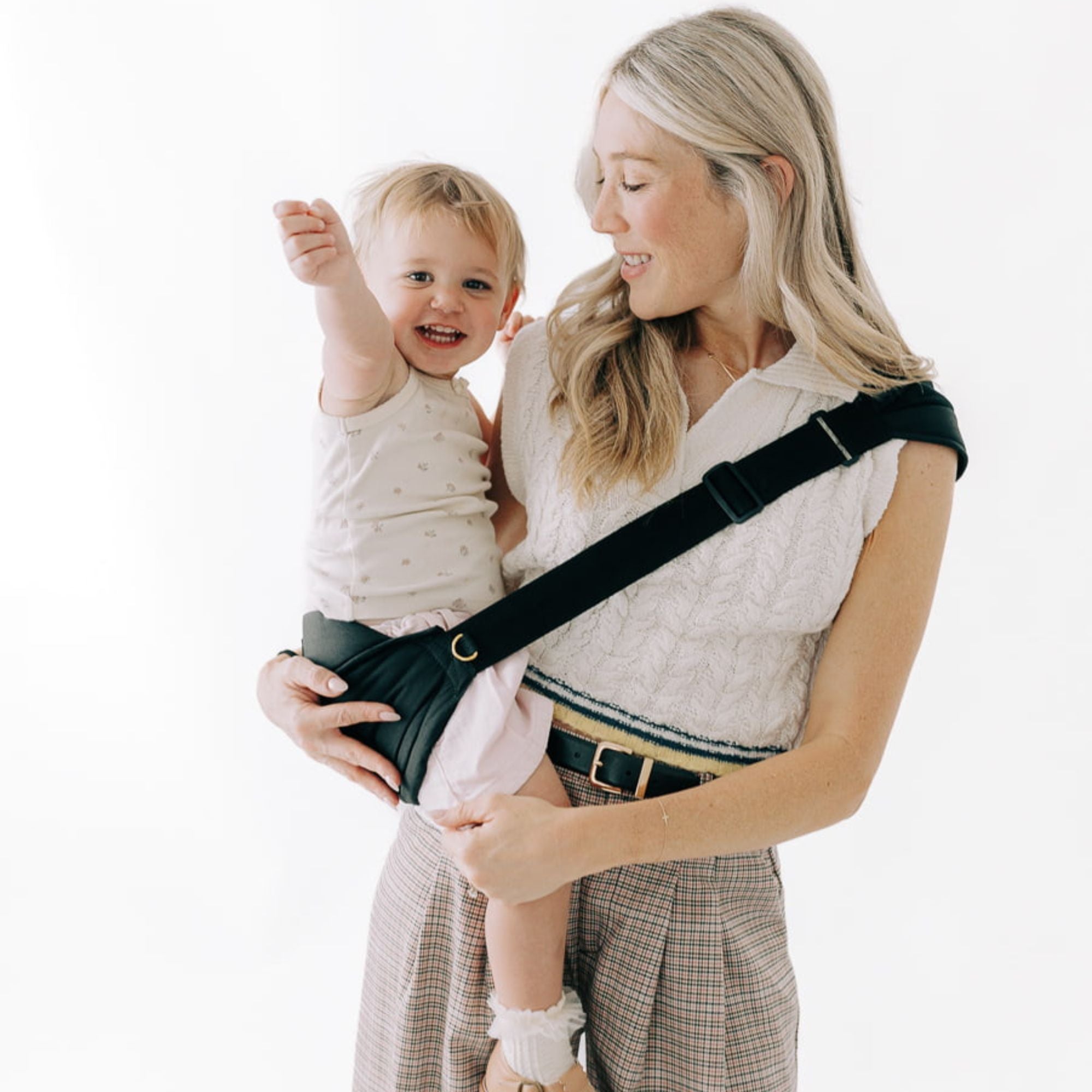 When your toddler wants to walk… until they don’t. Liftoff bridges the gap, giving you comfortable, stylish, and on-demand support without the bulk. Slide it on one shoulder, seat your kiddo, and you’re out the door. When they’re ready to roam again, roll it up and clip it shut or tuck it in your Pack. Comes fully loaded with a built-in phone pocket, tuckaway bottle holder, and D-rings to clip Tushbaby accessories and pacis.